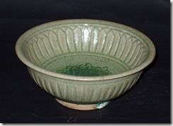 The Thais began producing glazed ceramics in the 12-13th centuries. In the next century or two, like the Vietnamese, they became deeply involved in in export trade in SE Asia and competed with the Chinese. Thai ceramics were produced in the north-west (the east being occupied by the Khmers) in places like Sawankhalok (Sisachanalai) which are famous for their underglazed iron, blue or brown covered boxes with floral or cross-hatched patterns; celadon or brown large globular bottles (kelapa) and ovoid bottles with ring handles; and large celadon dishes and bowls with incised floral designs.